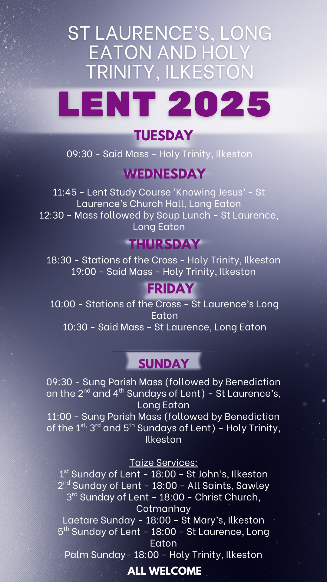 There is so much on offer this Lent at St Laurence’s Church and our sister church Holy Trinity, Ilkeston.