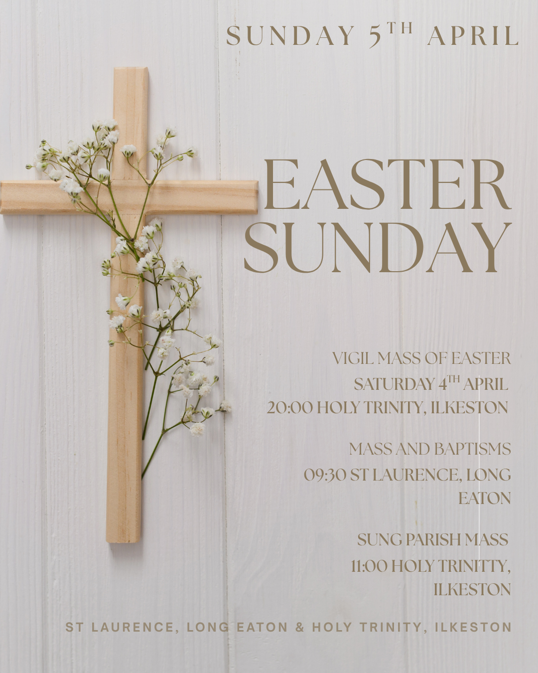 You would be most welcome to come and celebrate the resurrection of our blessed Lord. On Saturday evening we have our wonderful Vigil Mass of Easter Sunday at our sister church of the Most Holy Trinity in Ilkeston.
